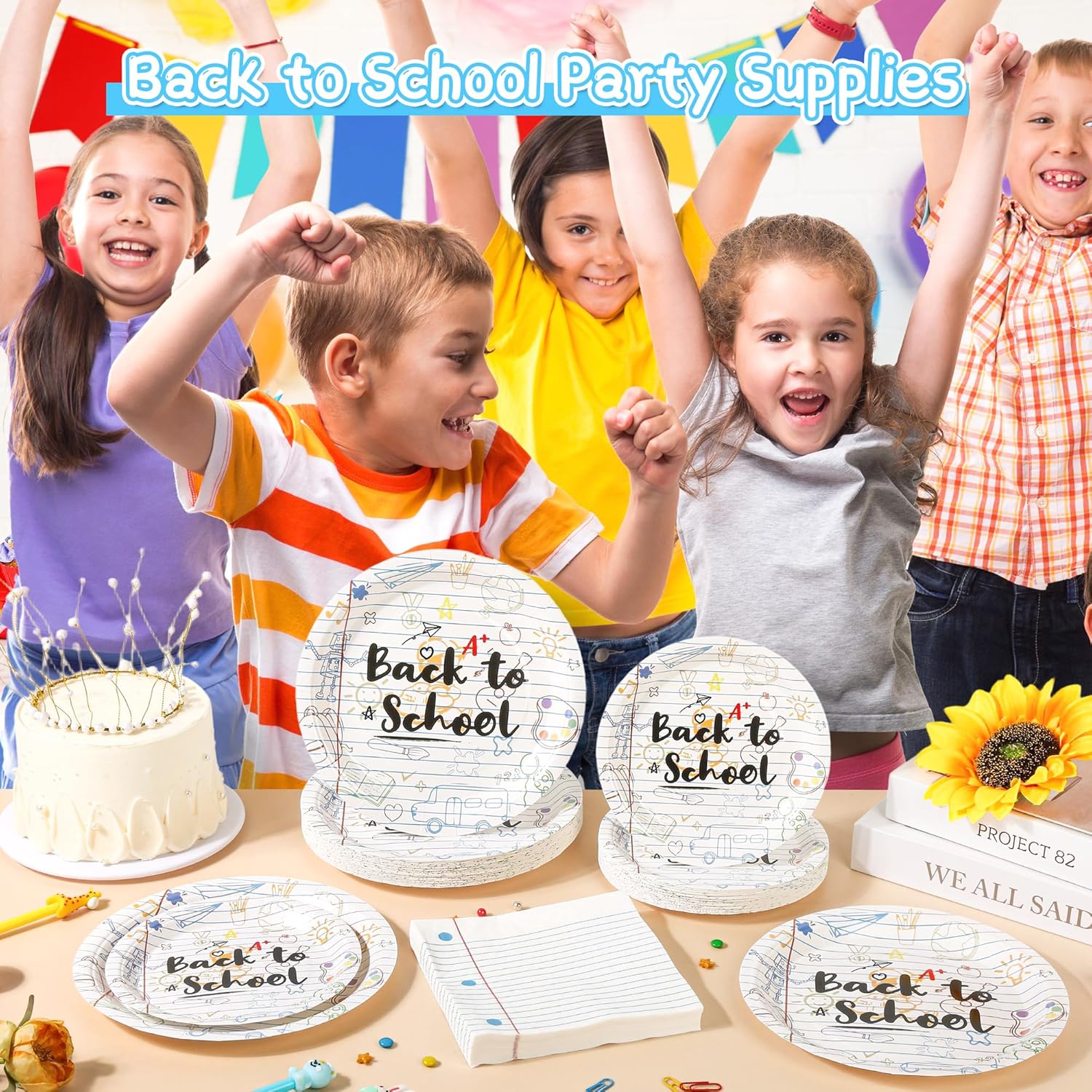 - UNIQUE DESIGN----Complete set with 9" back to school paper plates* 50,7" school themed plates* 50,6.5" notebook napkins *50. It’s the charming back to school decor to capture the energy of the new academic year. Great for first day of school party decorations, these school paper plates and napkins add a touch of classroom charm to any table. Nice design, teacher-approved!