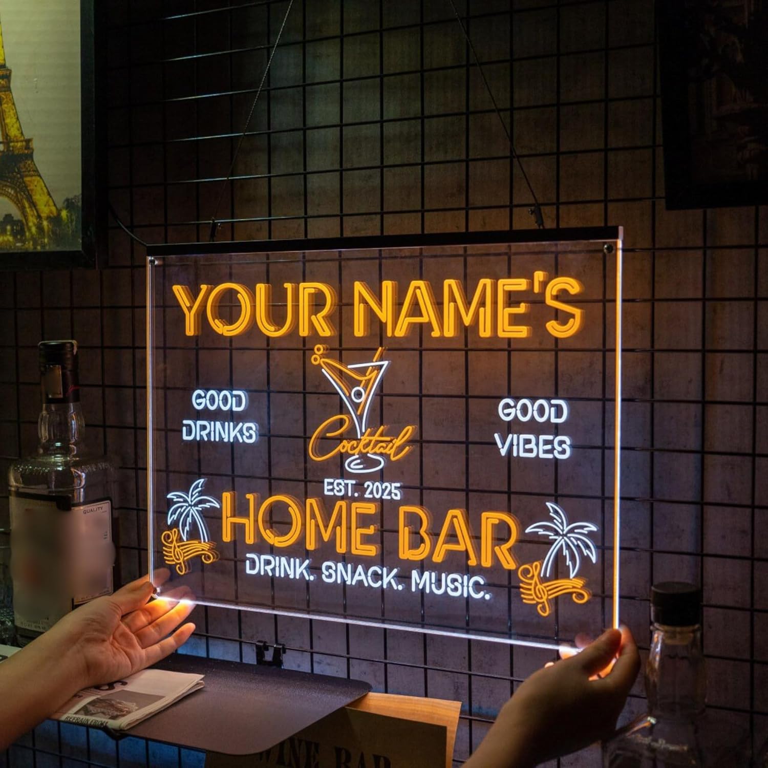 - Custom bar signs for home bar wall light up your space with flair. Custom bar signs for home bar wall light up décor with just the right LED glow. Ideal for man caves, home theaters, salons, or cafes. Handmade to impress—no design fees, perfect gift for any space. Disclaimer-The image is for color reference only. All product details are shown in the main image, and you will receive the design for final approval before we ship it to you