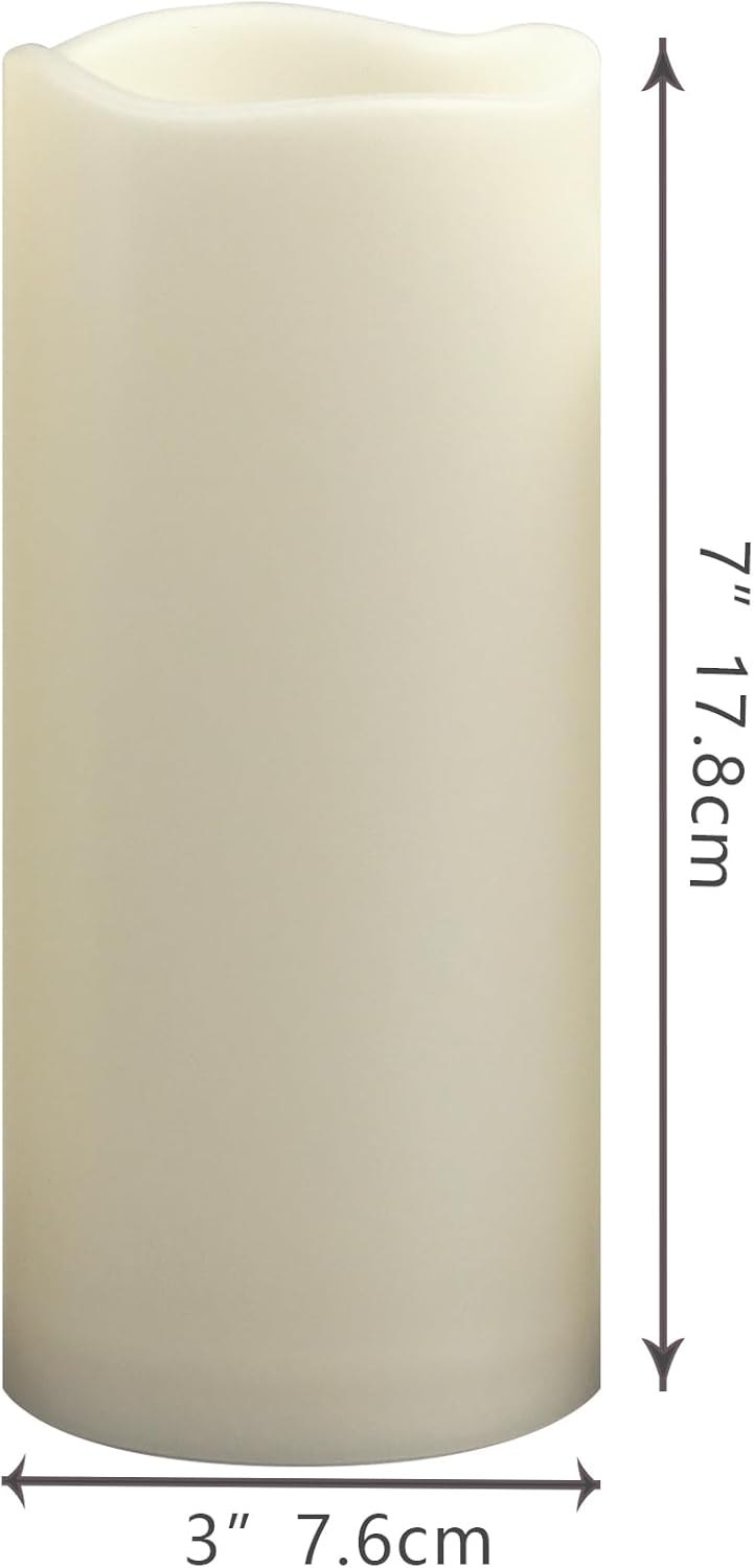 Waterproof Outdoor Battery Operated Flameless Candles with Auto Timer Flickering Plastic Resin Electric LED Pillar Lights for Lantern Patio Garden Wedding Party Decorations 3x7 Inches 3 Pack Ivory