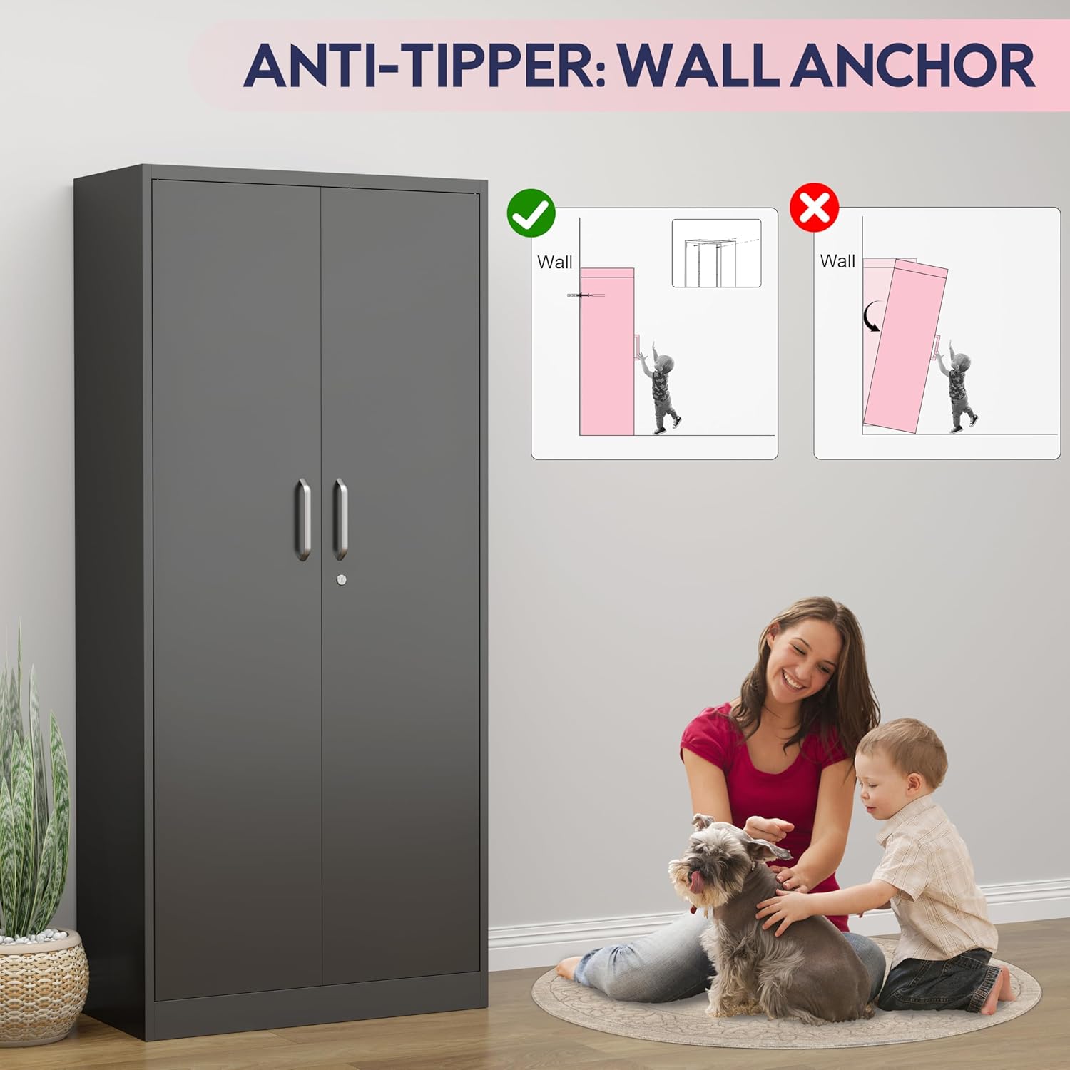- Easy Assembly, Adjustable Design: Includes clear instructions and tools for quick setup. The removable shelves and reinforced frame make this metal garage storage cabinet adaptable for any storage need—from heavy-duty garage gear to delicate office materials