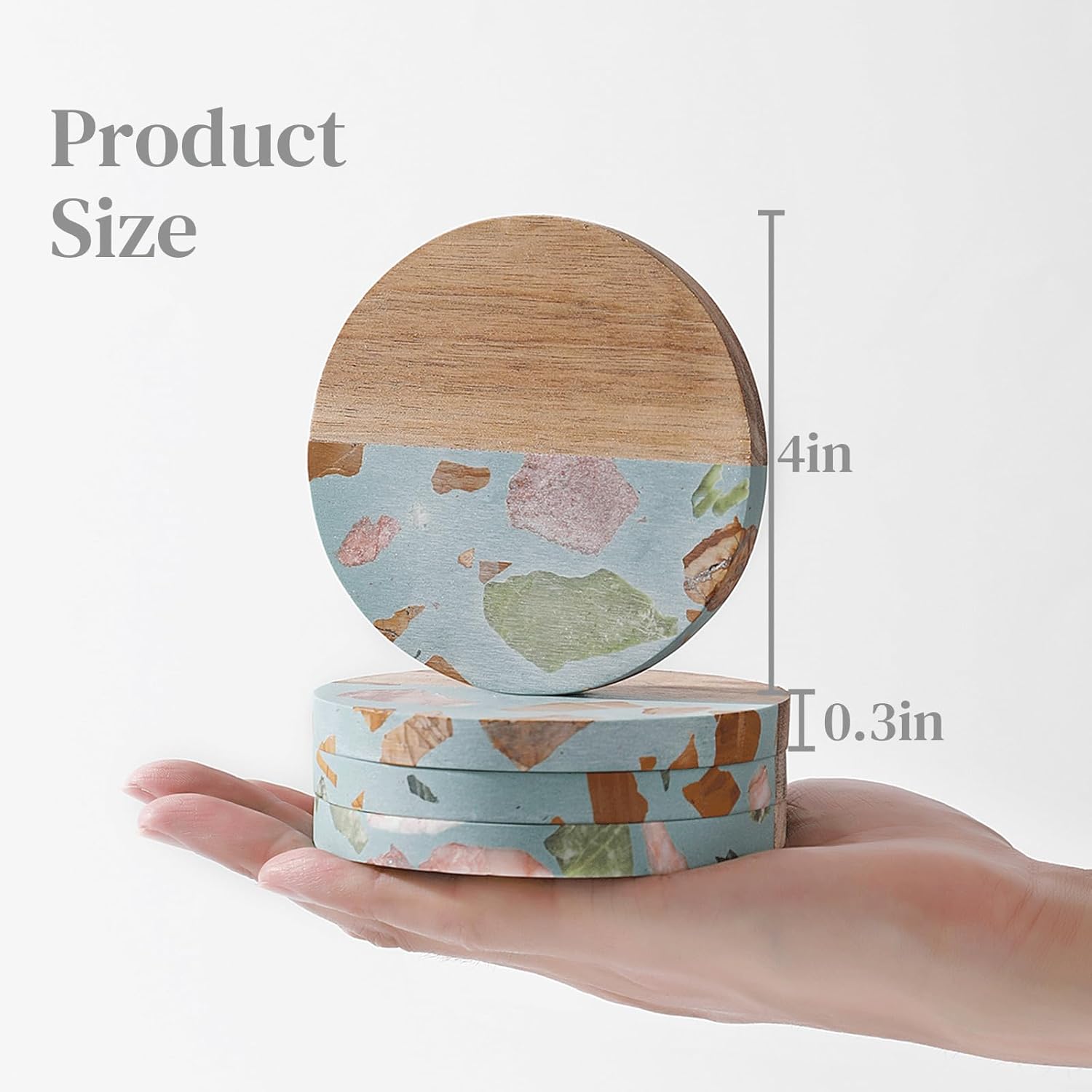 Drink Acacia Wood-Marble Coasters Set of 4,Cup Coaster for Coffee,Beverage,Cute Modern Cool Coasters for Home Decor,Table Desk Coaster Set for Housewarming,Living Room Decor (Green-Wooden)