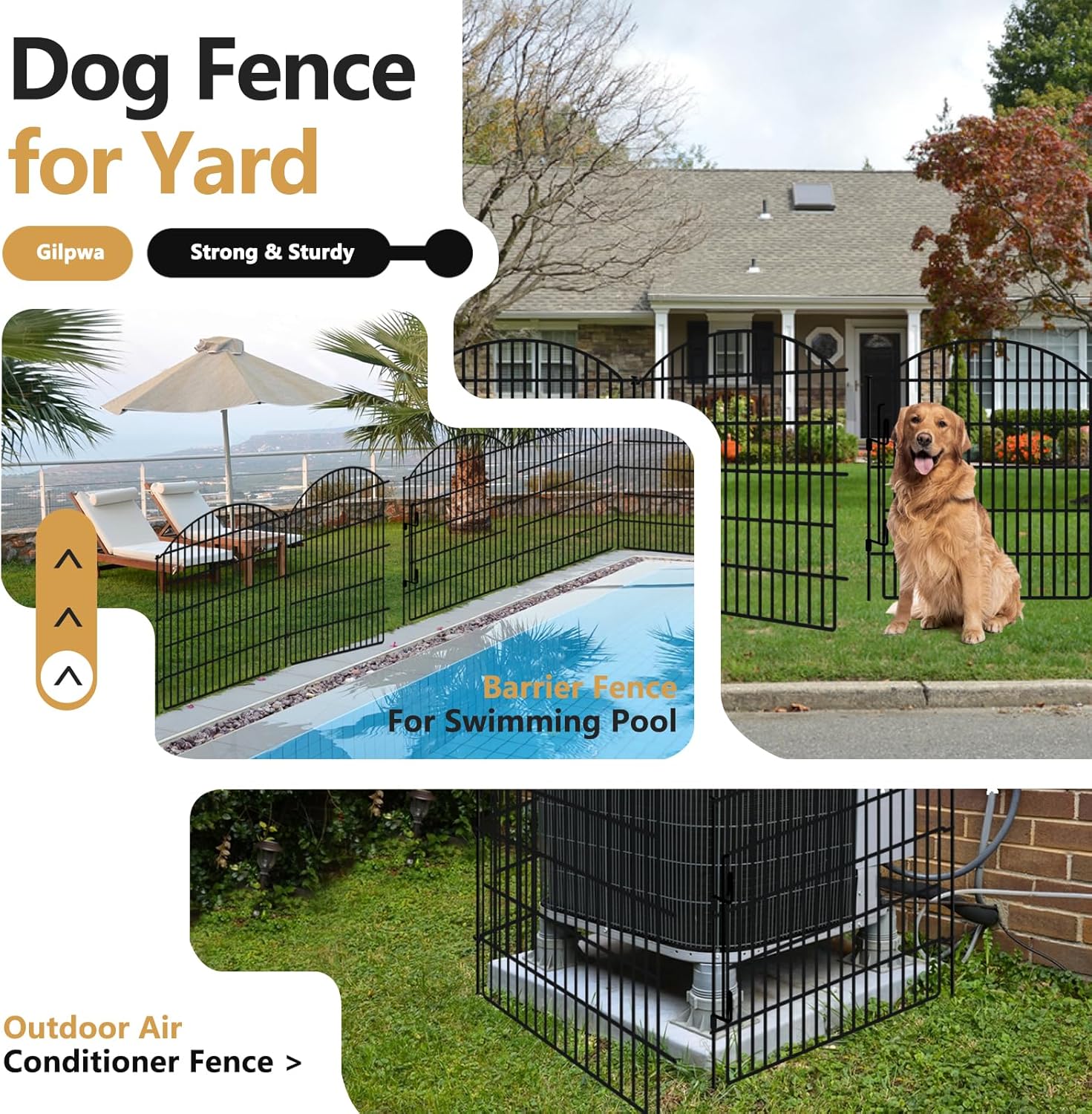 - MORE AVAILABLE SIZE: The classic arch shape design garden fence single piece measures 29" wide, 48" high, 1.4" gap. Comes with 11 metal stakes are 53.66" in height, which can be inserted into about 10.63 inches above the ground, making it strong enough to prevent animals from entering & leaving, dog digging, and even keep rabbits away from your plants. A total of 10 fence panels with a lock, connecting 11 fence stakes, the total length of the garden fence is approximately 24 ft.