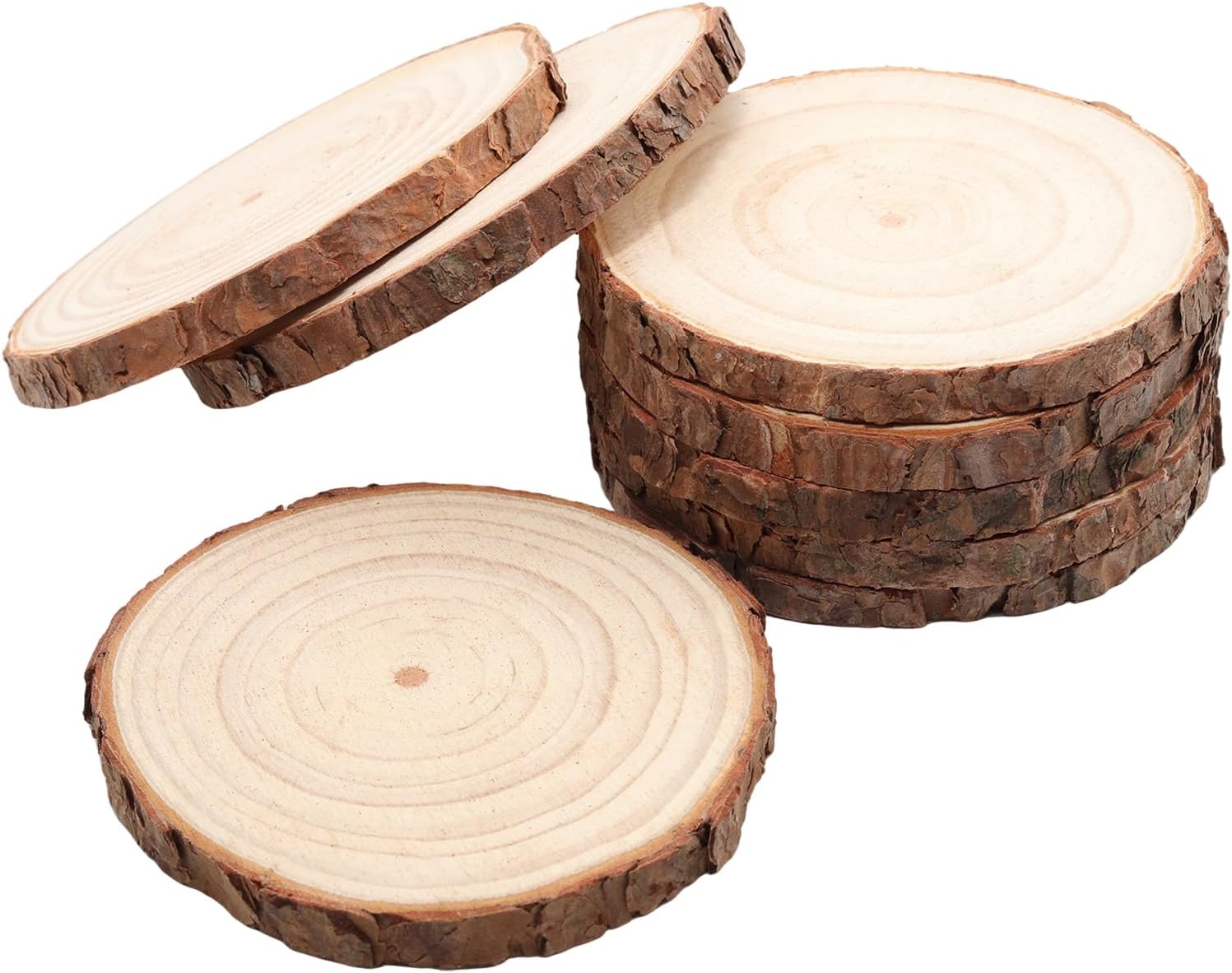 - Natural Wood Characteristics: Each slice is hand-cut from real branches, showcasing unique bark edges and organic grain patterns