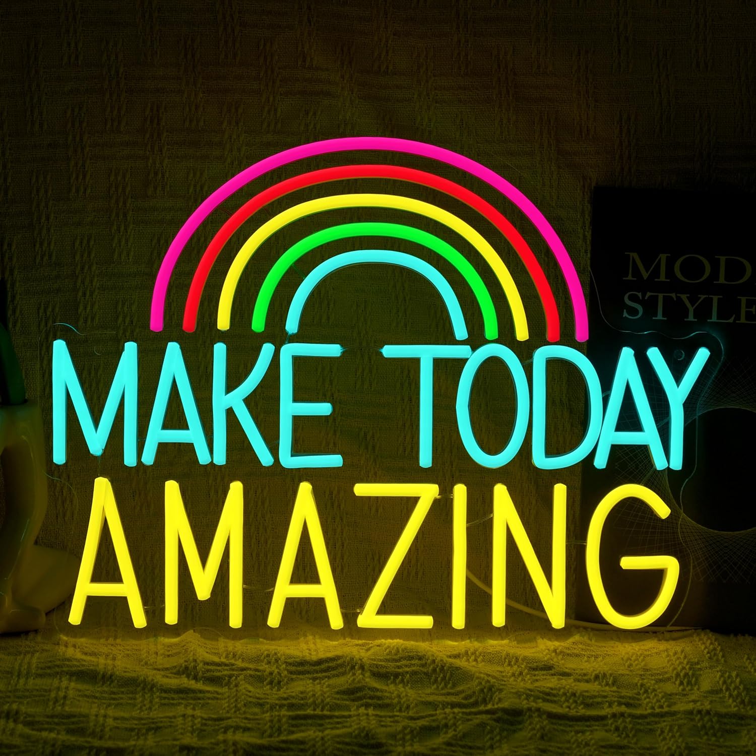 - Energizes Everyday: The rainbow neon sign solidifies a rainbow within reach in your space, allowing inspiration to flow with the light; the text "make today amazing" energizes active living and turns ordinary days into radiant ones!