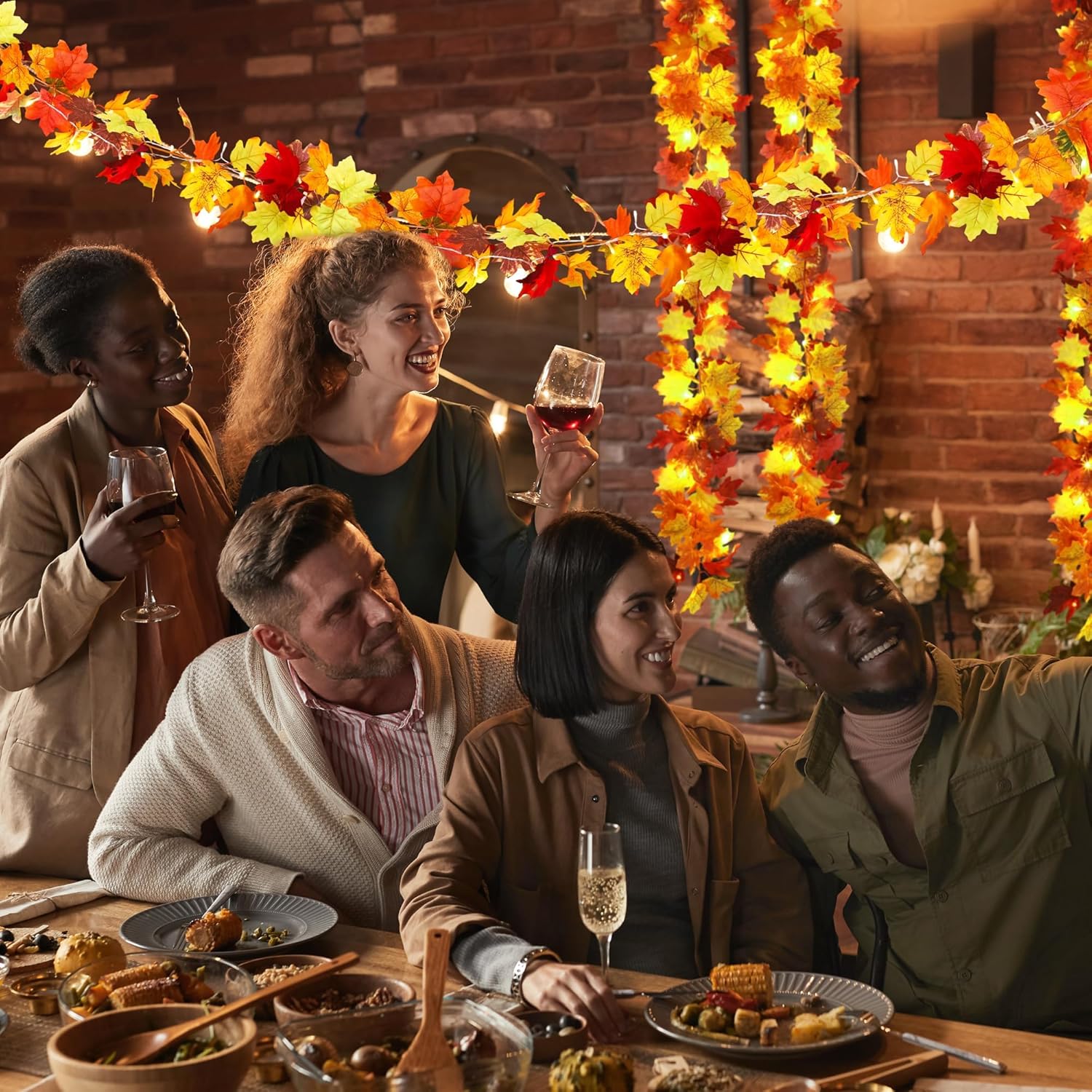 - Autumn Vibes: maple leaves are a classic natural element of autumn; the maple leaves garlands have dense leaves and a natural yellow color, which exudes a festive atmosphere and is an excellent decoration for autumn party; the lifelike maple leaves in vibrant fall colors combined with the 8-lighting-mode warm LED lights create a cozy and inviting atmosphere, bringing a warm, glowing ambiance that highlights the festive spirit of the season