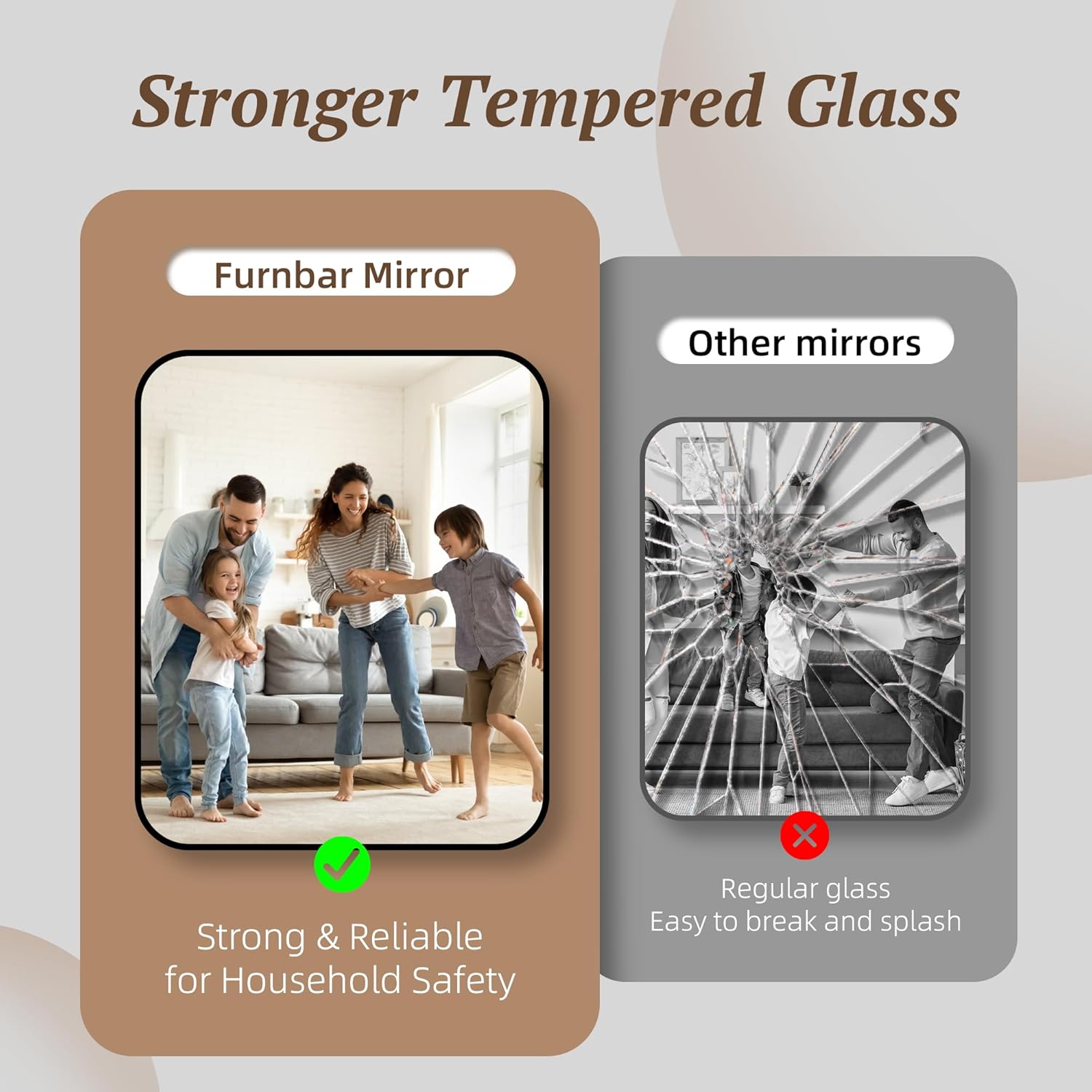 - Durable & Safe: The explosion-proof tempered glass ensures that even if broken, it won’t shatter into sharp pieces, offering peace of mind for families with kids, pets, or high-traffic areas like hallways and guest bathrooms