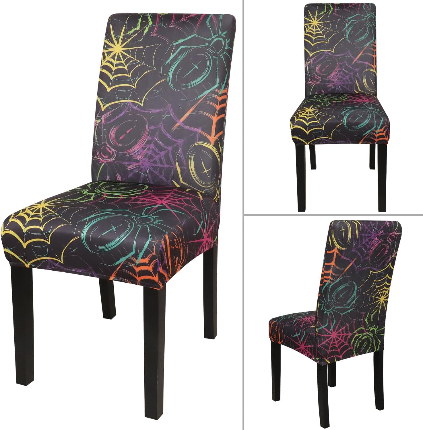 JQinHome Spider Halloween Chair Slipcover,Web Black Chair Covers Set of 6, High Stretch Washable Chair Protector Cover for Dining Room, Kitchen,Home Party,Wedding Ceremony(Spider,6PC)