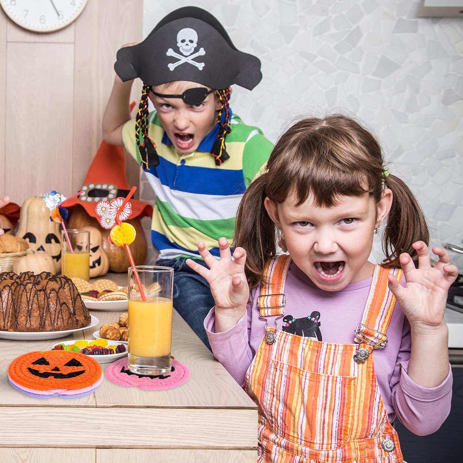 - Funny Pumpkin Design: Our Halloween themed coasters are designed with funny pumpkin expressions, mainly colored in pink, purple and orange, cute and delicate, will nicely increase festive atmosphere