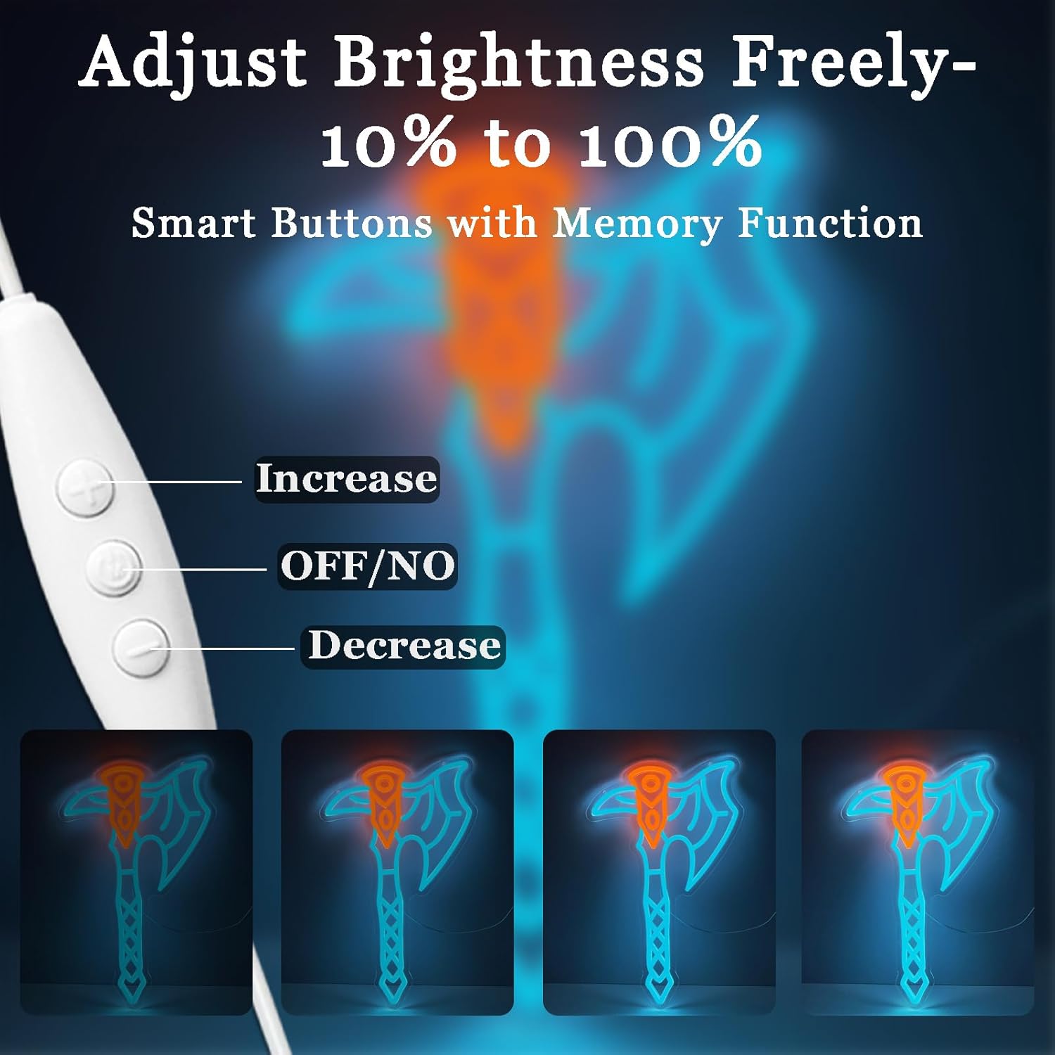 - USB POWER + DIMMER CONTROL: Plug into adapter, power bank, or PC and fine-tune brightness from soft ambience to party mode; doubles as an axe neon desk lamp light box for desktops or shelves without harsh glare