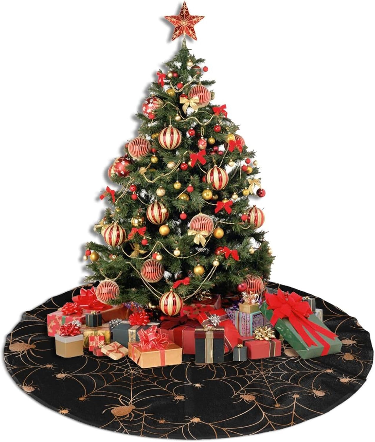 Christmas Tree Skirt,Gold Spider Web Xmas Tree Skirt Rustic Farmhouse Tree Skirt for Christmas Decor Xmas Holiday Home Party Decorations48