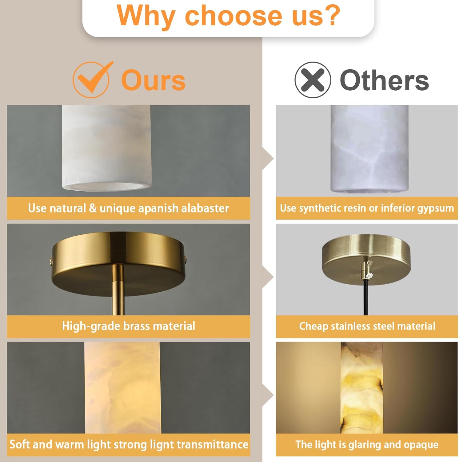 - 【Wide Application for Indoor】Alabaster pendant light fixture design is simple and exquisite, can be used as the perfect art for decorating home, suitable for a variety of home decoration styles. Ideal for restaurants, bedrooms, offices, kitchen islands, living rooms, corridors, entryways, foyers, stairs, farmhouses, bars, cafes, hotels, etc.