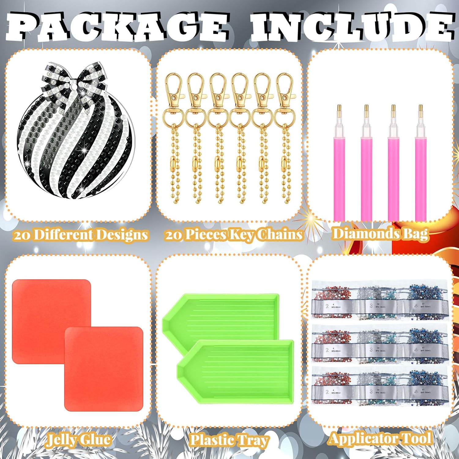 - Package Including: our package contains 20 Christmas black and white balls diamond painting keychains with tools, which are suitable for those who like DIY; Plenty to use for multiple projects or share with friends and family for a fun Christmas break together